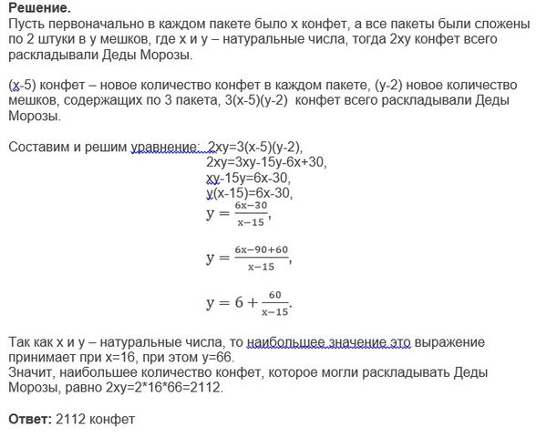 ху=16*132=2112 конфет раскладывали Деды Морозы.