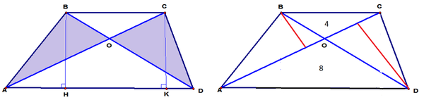 Равенство возможно, если S(Δ BOC)=6;S(ΔAOD)=24;