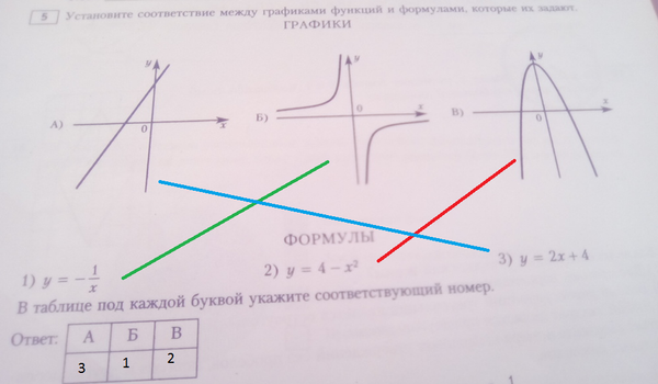 Установите соответствие между графиками функции и формулами, которые их задают.