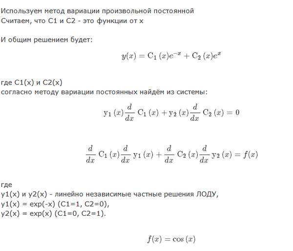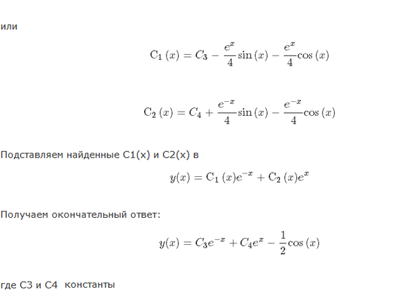 y=C_(3)e^(-x)+C_(4)e^x- (1/2)*cosx