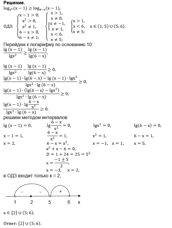 1б){log_(x-1)(6-x) ≥ log_(x-1)x^2