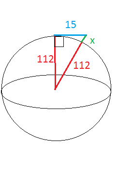 Радиус сферы равен 112 см. Точка, лежащая на плоскости, касательной к сфере, удалена от точки касания на 15 см. Найдите расстояние от этой точки до ближайшей к ней точки сферы.