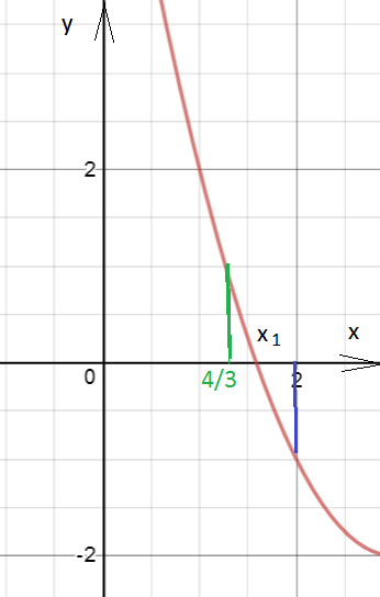 Если х_(2)∈(4/3;2], то f(4/3) > 0, f(2) < 0