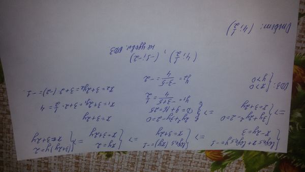 system{log(0,5)x+log(0,5)y=-1;x-2y=3}