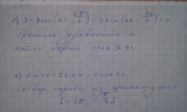 1) 5-8cos(x-3Pi/2)-2sin(2x-7Pi/2)=0...