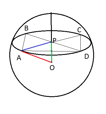 Квадрат вписан в окружность малого радиуса r=PA=PB=PC=PD.