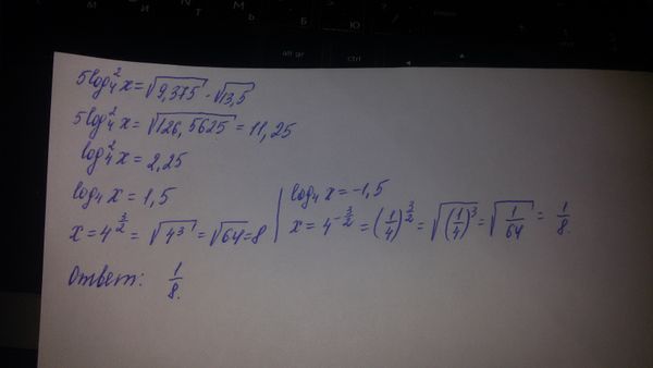 Решить уравнение: 5log^2_(4)x=sqrt(9,375)*sqrt(13,5) (Если корней несколько, то в ответе указать меньший корень)