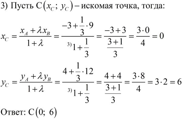 λ=AC/CB, то координаты точки С вычисляются по формулам: