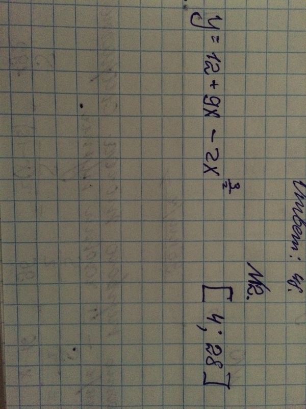 y(9)=12+9*9-2*sqrt(9^3)=39 - наибольшее значение функции на отрезке [4;28]