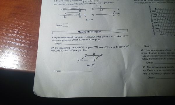 В параллелограмме ABCD сторона CD равна 12, а угол C равен 30 градусов. Найдите высоту DH.