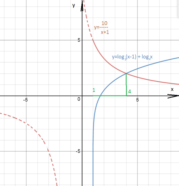 у=10/(х+1) и y= log_(3)(x-1)+log_(4)x