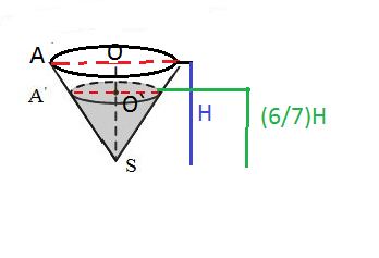 В сосуде, имеющем форму конуса , уровень жидкости достигает 6/7 высоты.Объем сосуда 3430мл .Чему равен объем налитой жидкости? Ответ дайте в миллиметрах