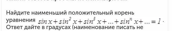 Наименьший положительный корень (π/6) или 30 градусов