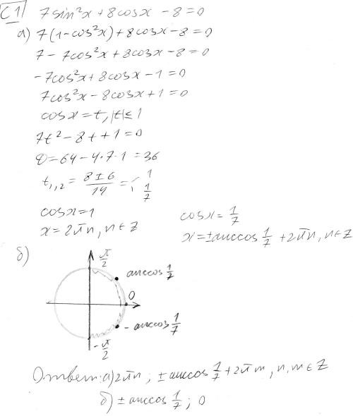 7cos^2x-8cosx+1=0