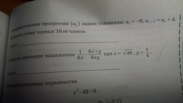 Найдите значение выражения 1/6x - (6x + y)/6xy при x = √48, y = 1/4: