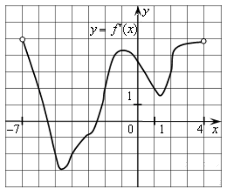 На рисунке изображен график у = f'(х) — производной функции f(х), определенной на интервале (–7;4). Найдите промежутки возрастания функции f(х). В ответе укажите сумму целых точек, входящих в эти промежутки.