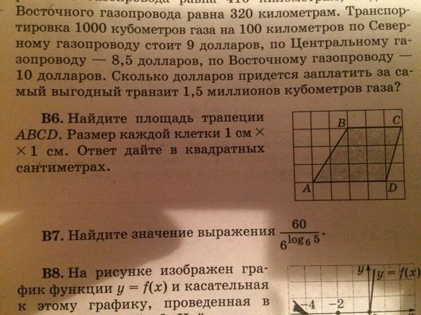 В6. Найдите площадь трапеции ABCD. Размер каждой клетки 1 см ✕ 1 см. Ответ дайте в квадратных сантиметрах.