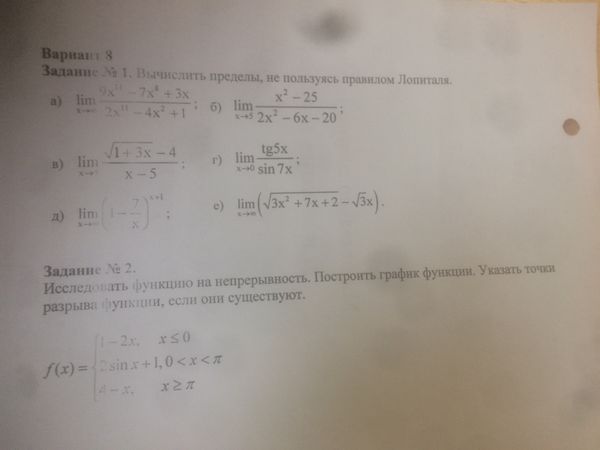 4) lim_(x→0)(tg5x)/(sin7x)=(0/0)= применяем первый замечательный предел и следствия из него:
