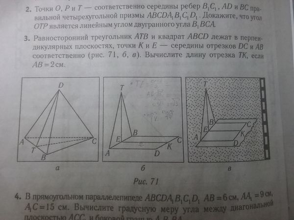 ТК^2=ТЕ^2+EK^2=3+2^2=7