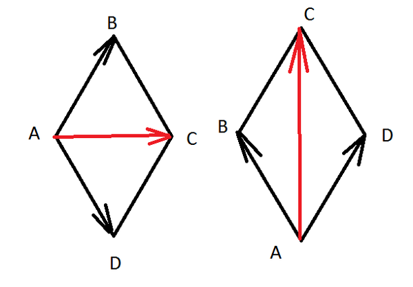О т в е т. 12 или 16 Если угол А - тупой, то меньшая диагональ ромба- сумма векторов. Если угол А - острый, то большая.