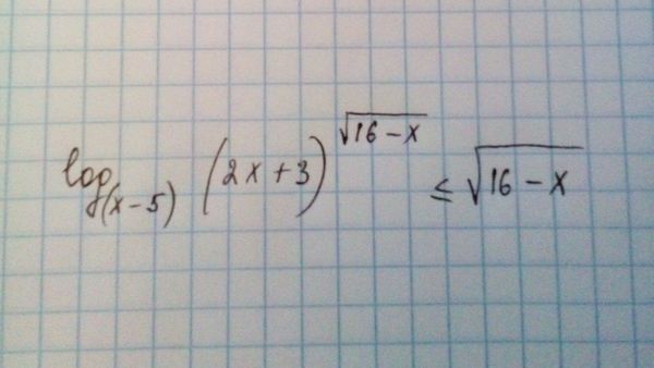sqrt(16-x)*(log_(x-5)(2x+3) -1) меньше или равно 0