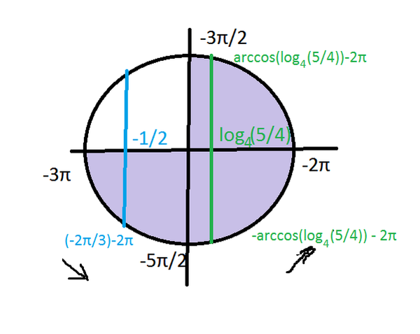 О т в е т. x=± arccos(log_(4)(5/4))+2πk, k∈Z