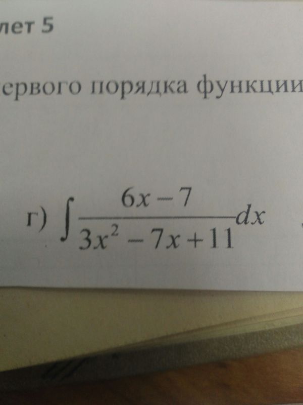 вычислить неопределенный интеграл (6x-7)/(3x^2-7x+11) dx
