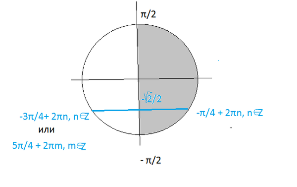 х=-(- π/4)+(2n-1)π=(-3π/4)+2πn, n∈Z при k=2n-1.