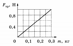 При исследовании зависимости модуля силы трения скольжения F_(тр) стального бруска по поверхности стола от массы m бруска на брусок помещали дополнительные грузы. Но результатам исследования получен график, представленный на рисунке. Определите коэффициент трения.