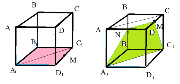 3) Если точки А1; С1 и M лежат так как на рис. 1, то сечение - плоскость А1В1С1D1.