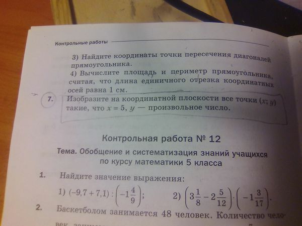 Изобразите на координатной плоскости все точки (x,y) такие, что х = 5, у — произвольное число.