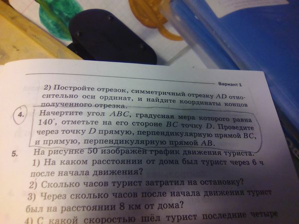Начертите угол АВС, градусная мера которого равна 140°, отметьте на его стороне ВС точку D. Проведите через точку D прямую, перпендикулярную прямой ВС, и прямую, перпендикулярную прямой АВ