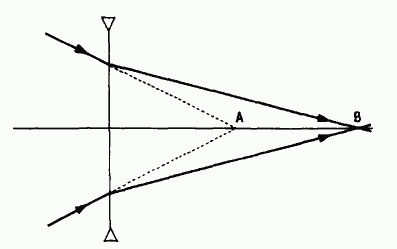 Сходящийся пучок лучей падает на рассеивающую линзу таким образом, что продолжения всех лучей пересекаются в точке, лежащей на главной оптической оси линзы на расстоянии 15 см от нее. Найти фокусное расстояние линзы, если продолжения преломленных лучей пересекаются в точке, находящейся за линзой на расстоянии 60 см от нее.