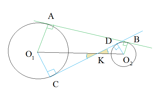 Прямоугольные треугольники O1CK и О2DК подобны по двум углам: