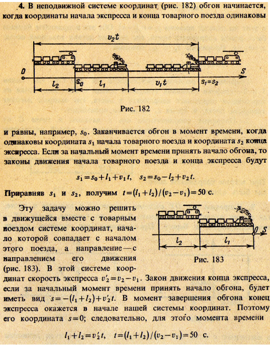 Товарный поезд длины l1 = 630 м и экспресс длины l2 = 120 м идут по двум параллельным путям в одном направлении со скоростямиv1 = 48,6 км/ч и v2 = 102,6 км/ч соответственно. В течение какоговремени экспресс будет обгонять товарный поезд
