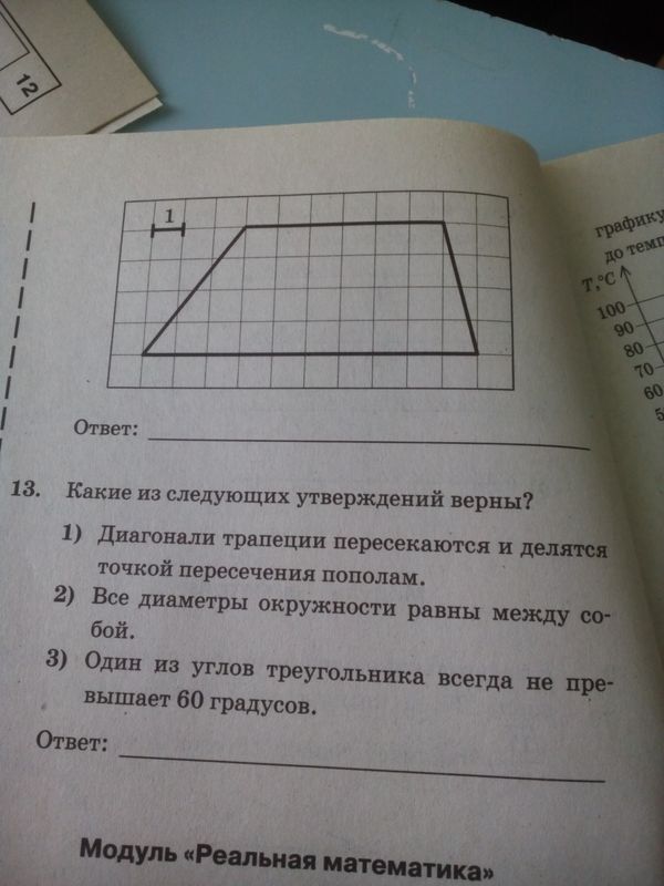 Какие из следующих утверждений верны? 1) Диагонали трапеции пересекаются и делятся точкой пересечения пополам. 2) Все диаметры окружности равны между собой. 3) Один из углов треугольника всегда не превышает 60 градусов.