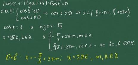 Решите уравнение (cox-1)(tgx+sqrt(3))*sqrt(cosx)=0