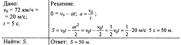 При аварийном торможении автомобиль, движущийся со скоростью 72 км/ч, остановился через 5 с. Найти тормозной путь.