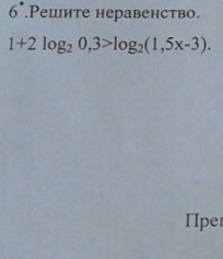 решите неравенство 1+2log2 0,3 > log2(1,5x-3)