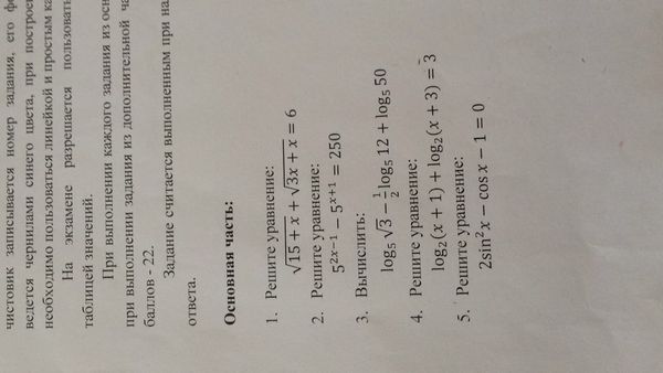 1) sqrt(15+x) + sqrt(3x+x) = 6 3)...