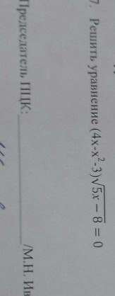 ОДЗ: 5x-8 > =0; x > =8/5 sqrt(5x-8) = 0 5x-8 = 0 x = 8/5 - первый корень 4x-x^2-3 = 0 -x^2 + 4x - 3 = 0 домножим на -1 x^2 - 4x + 3 = 0 По теореме Виета x1+x2 = 4 x1*x2 = 3 x1 = 1 (не удовлетворяет ОДЗ, так как 1 < 8/5) x2 = 3 Ответ: 3, 8/5