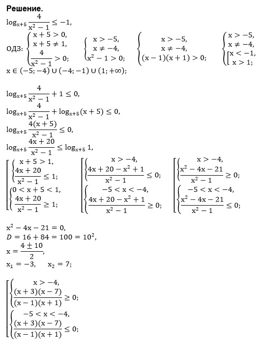 log_(x+5)(4/(x^2-1)) меньше или равно -log_(x+5)(x+5)