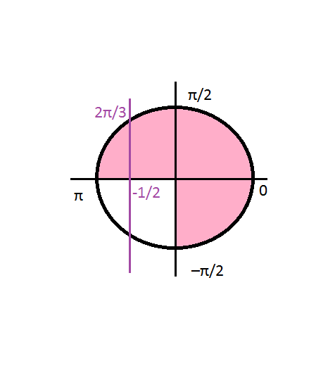 б) (2π/3)∈ [–π/2; π] cм. рисунок.