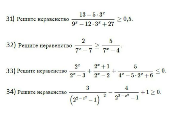 34) 3/(2^(2-x^2)-1)^2 - 4/(2^(2-x^2)-1) + 1 > = 0