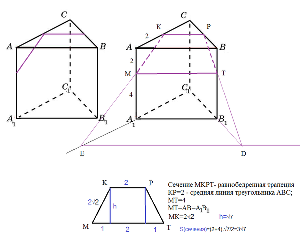 В правильной треугольной призме с основаниями АВС и A1B1C1 боковое ребро равно 6, а сторона основания - 4 На ребре AA1...