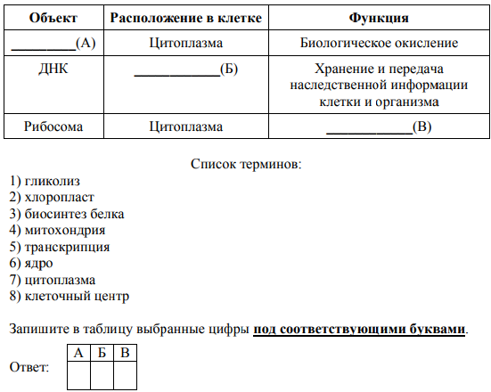 Био 20) Проанализируйте таблицу «Структуры эукариотической клетки». Заполните пустые ячейки таблицы, используя термины, приведённые в списке. Для каждой ячейки, обозначенной буквой, выберите соответствующий термин из предложенного списка.