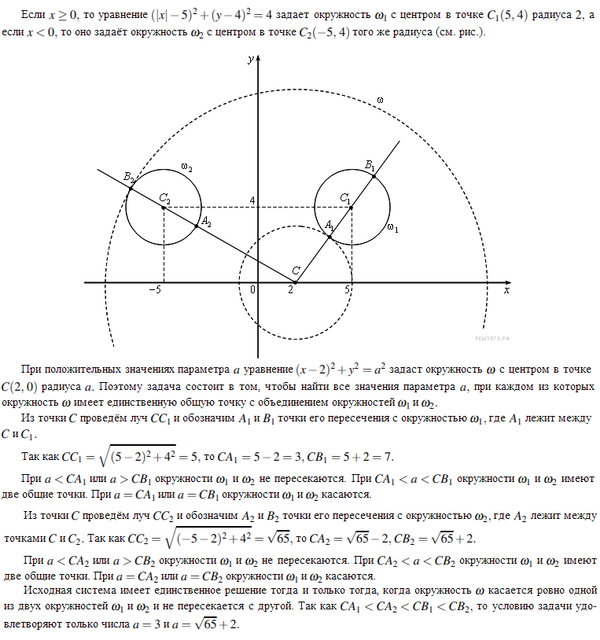 Найдите все положительные значения a, при каждом из которых система имеет единственное решение system{(|x|-5)^2+(y-4)^2=4;(x-2)^2+y^2=a^2}