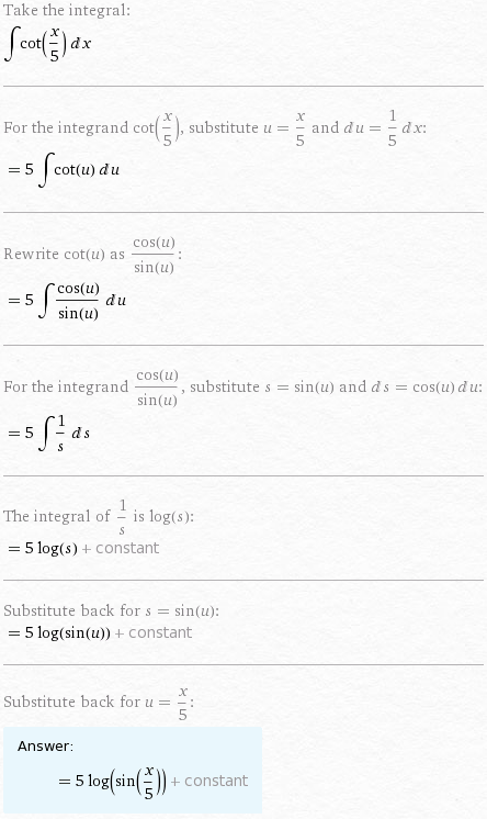 сделав замену переменной интегрирования найти интеграл ctg(x/5)dx