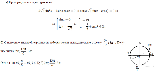 А смотри, мы же когда разложили sinx(sqrt(3)sinx-cosx) = 0, у нас же дальше получается как sinx = 0 и sqrt(3)sinx-cosx = 0. Как раз таки из того что в скобках и выходит tgx = 1/sqrt(3). Смотри как: