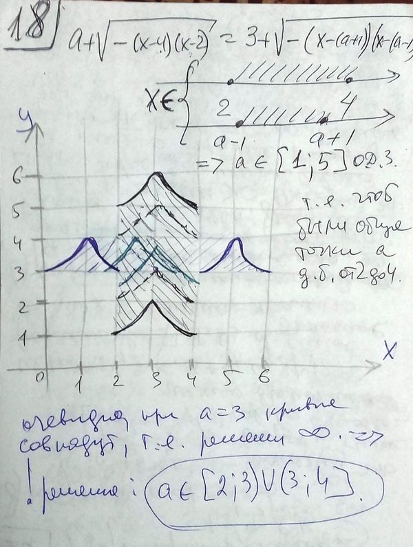 Найдите все значения параметра а, при каждом из которых уравнение a+sqrt(6x-x^2-8) = 3+sqrt(1+2ax-a^2-x^2) имеет ровно одно решение